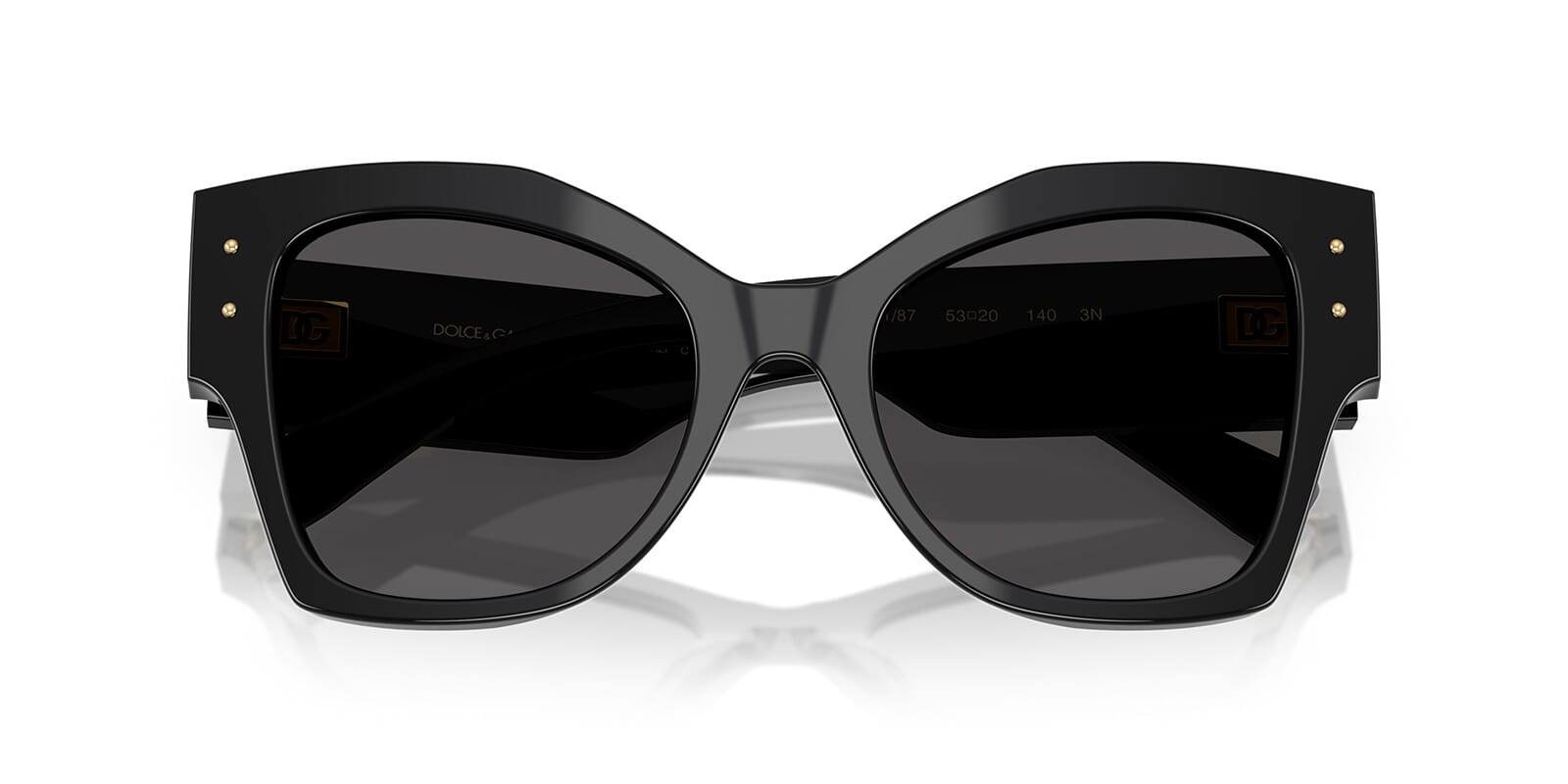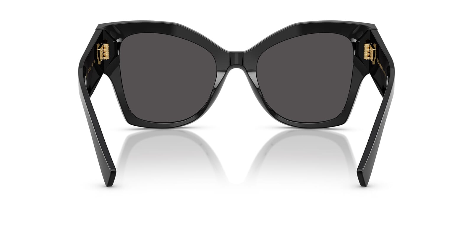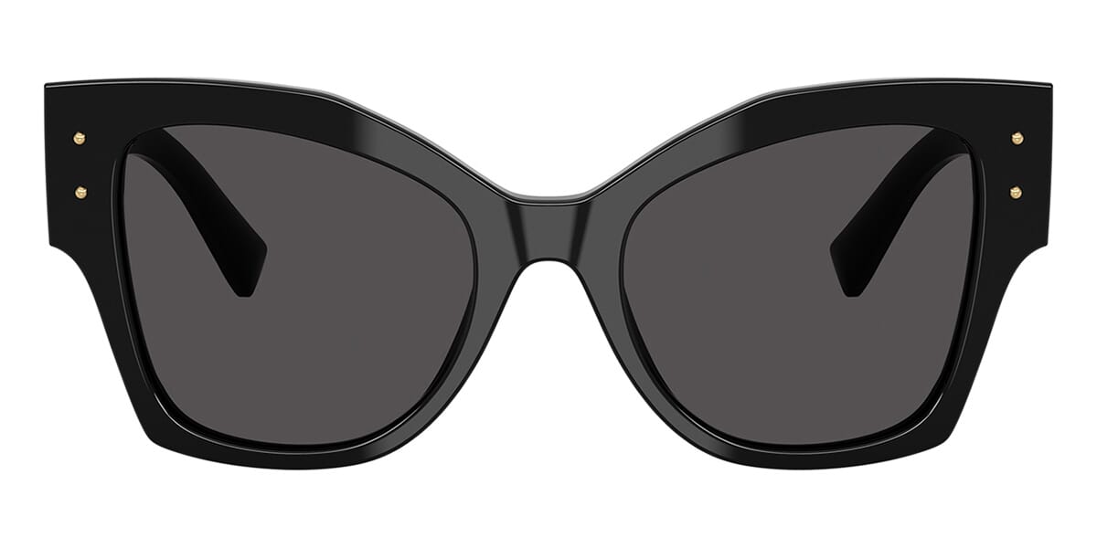 This cat eye Dolce&Gabbana sunglass comes in a black frame with dark grey lenses.