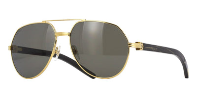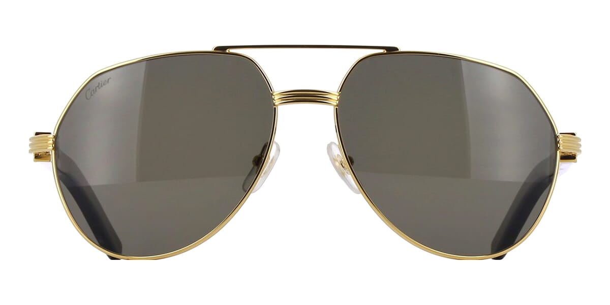 This aviator Cartier sunglass comes in a shiny gold with black genuine buffalo horn frame with grey with light mirror polarised lenses.