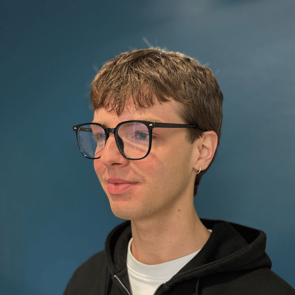 Blue light from the sun and digital screens is believed to be linked to eye strain, headaches and poor sleep. To help protect your eyes and potentially improve your quality of sleep these frames come with a blue light filter by default. If you need to replace the default lenses with prescription lenses there are premium blue light coatings available with all of our lens options, more information on our blue control page here
