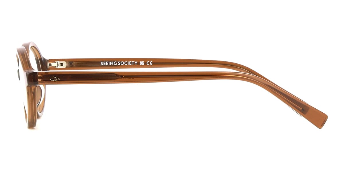 This cat eye Seeing Society optical comes in a shiny brown crystal frame.