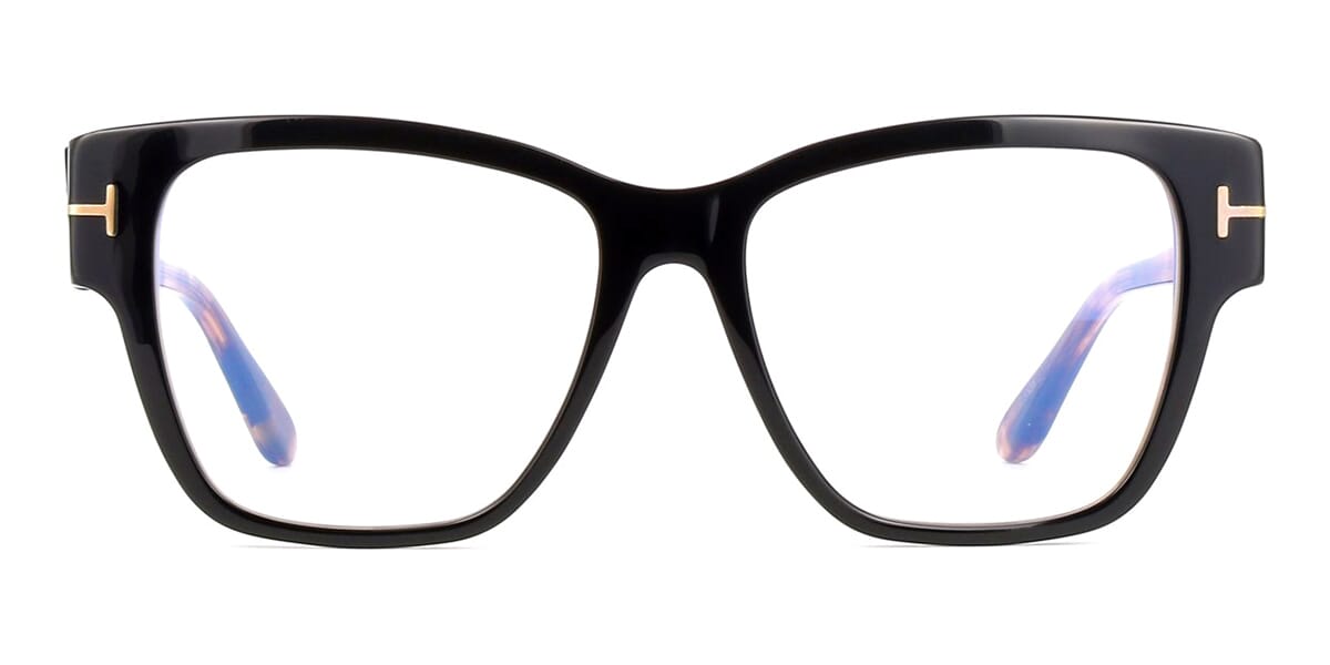 This square Tom Ford optical comes in a shiny black on havana frame.
