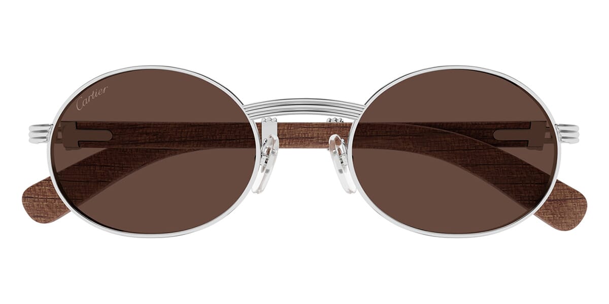 This square Cartier sunglass comes in a silver with real brown Bubinga wood frame with brown lenses.