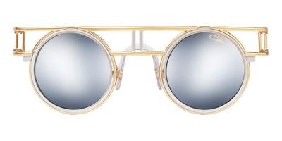 This round Cazal sunglass comes in a gold violet frame with violet gradient lenses.