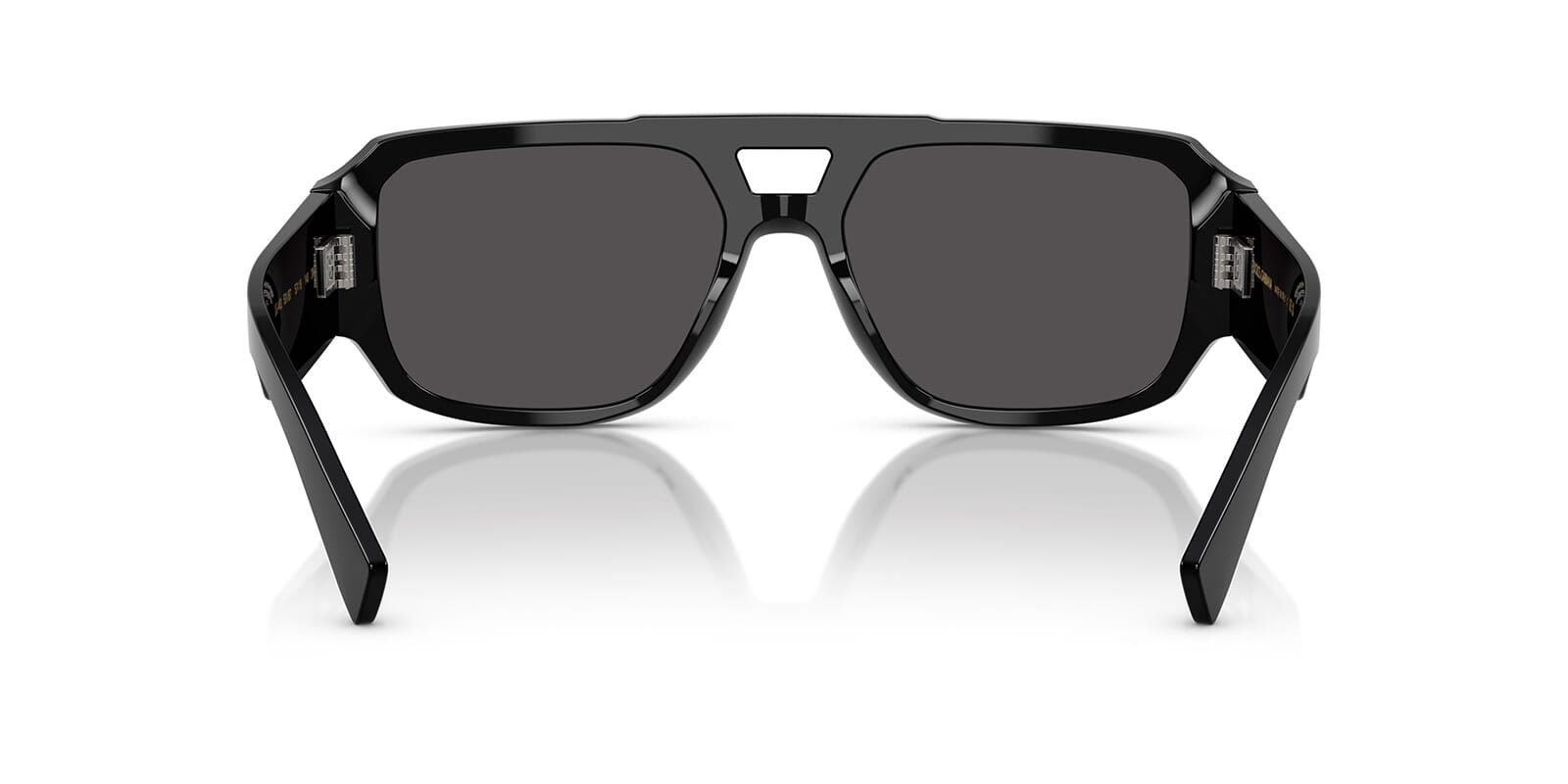 This rectangular Dolce&Gabbana sunglass comes in a black frame with dark grey lenses.