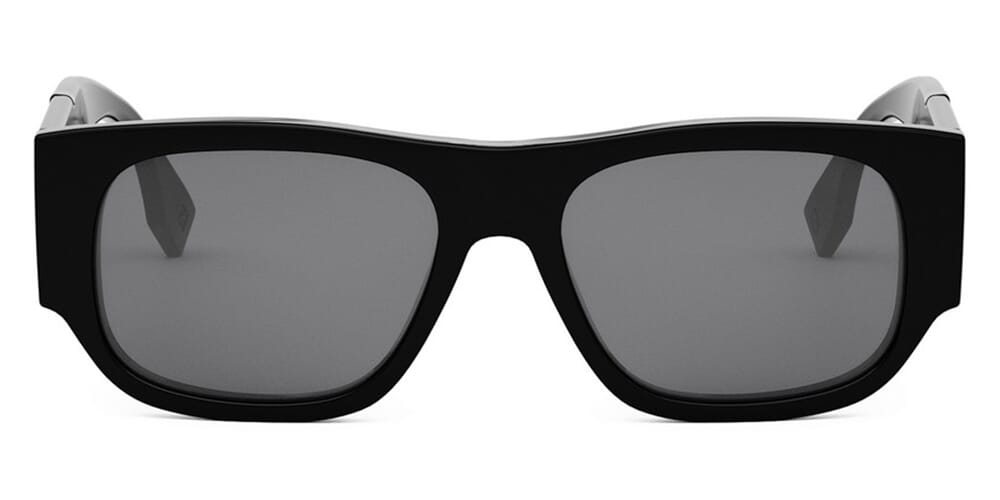 This square Fendi sunglass comes in a shiny black frame with grey lenses.
