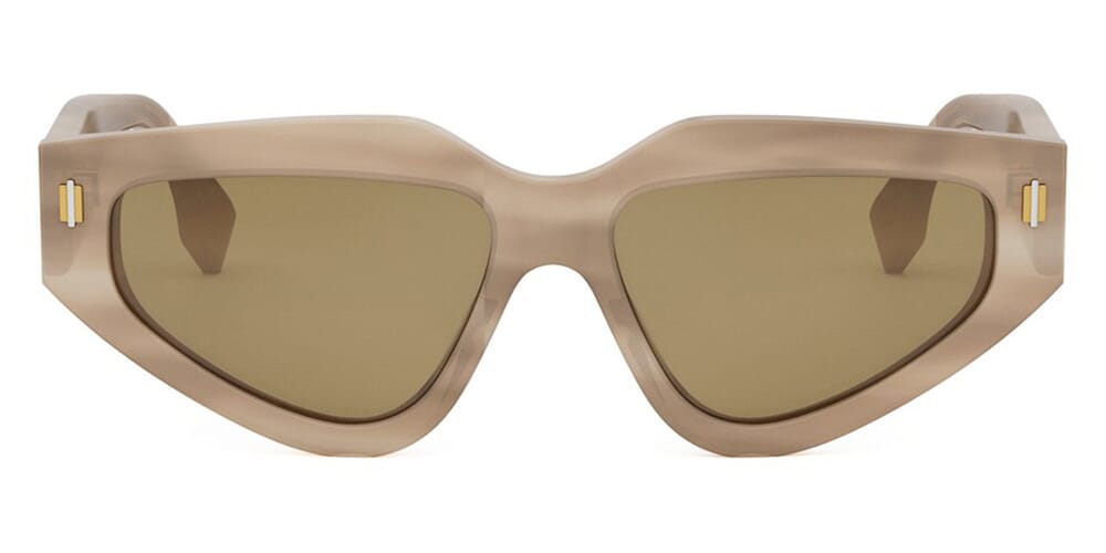 This cat eye Fendi sunglass comes in a shiny striped brown havana frame with brown lenses.