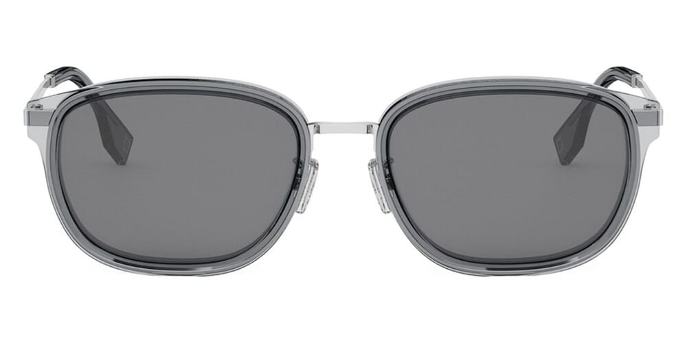 This square Fendi sunglass comes in a crystal grey with silver frame with grey lenses.
