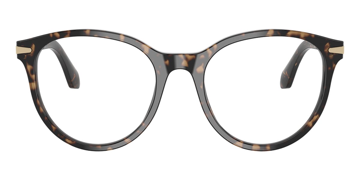 This round Giorgio Armani optical comes in a beige havana frame.