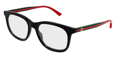 This square Gucci optical comes in a crystal brown with green and red frame.