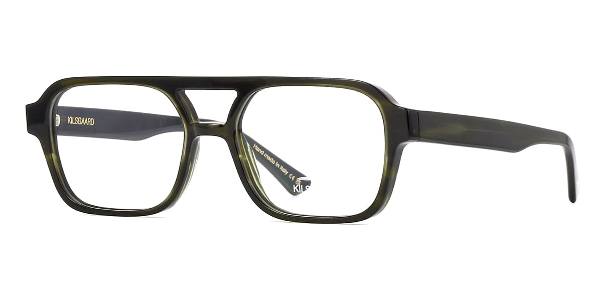 This square Kilsgaard optical comes in a shiny dark green havana frame.