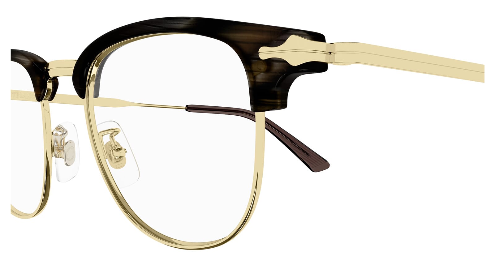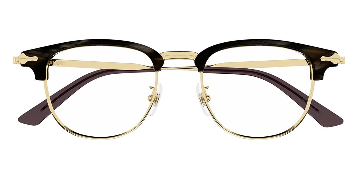 This square Mont Blanc optical comes in a shiny gold and brown frame.