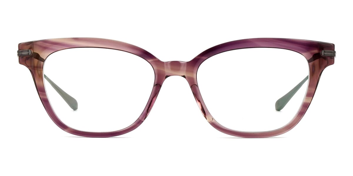 This cat eye Masunaga optical comes in a plum crystal and gunmetal frame.