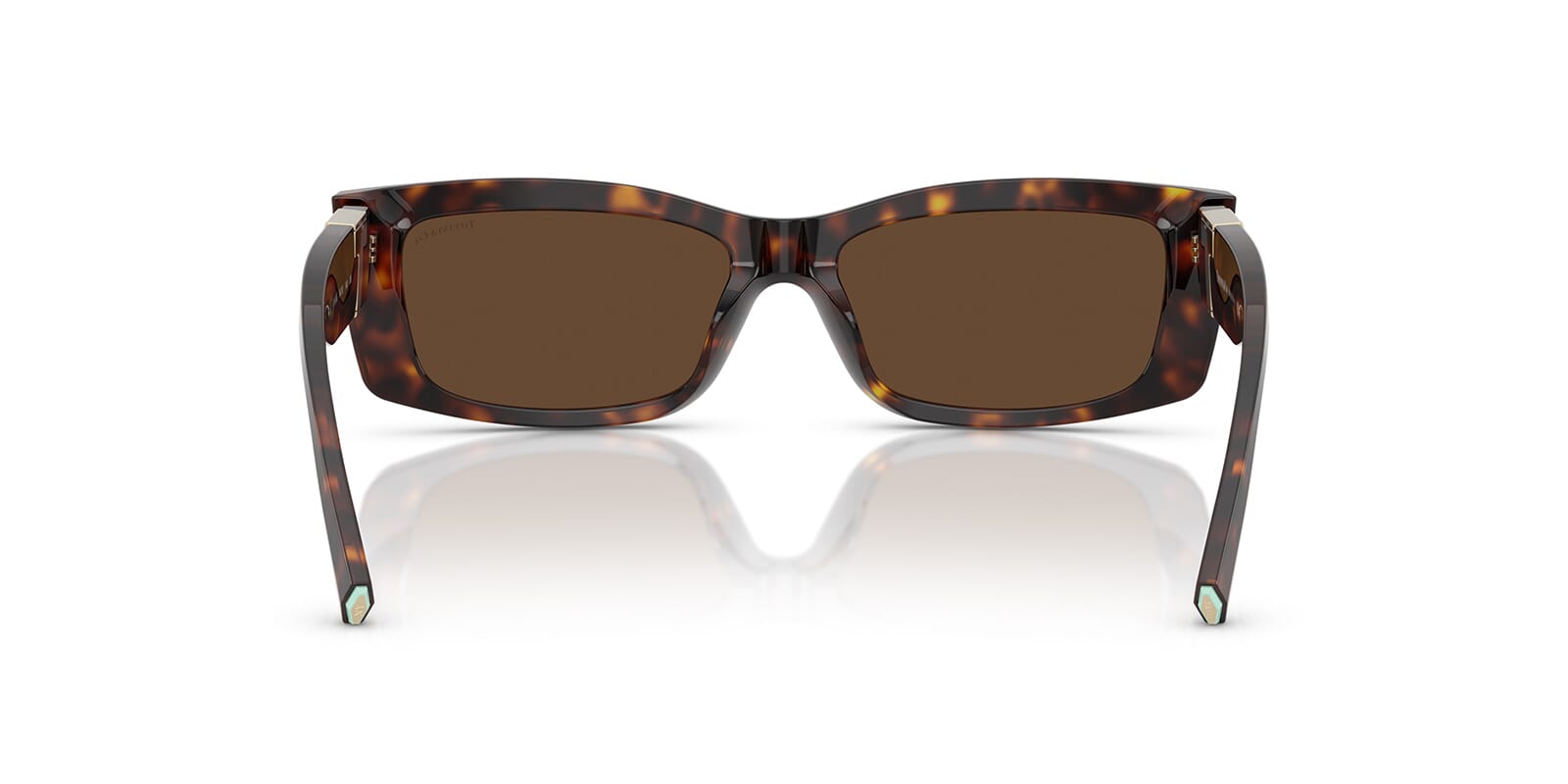 This rectangular Tiffany sunglass comes in a havana frame with light brown lenses.