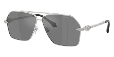 This aviator Versace sunglass comes in a gold frame with dark grey lenses.