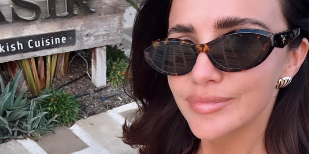 This cat eye Prada sunglass comes in a honey tortoise frame with dark brown lenses.
