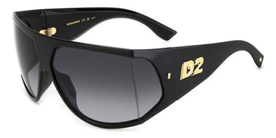 This wraparound Dsquared2 sunglass comes in a black with dark ruthenium frame with grey lenses.