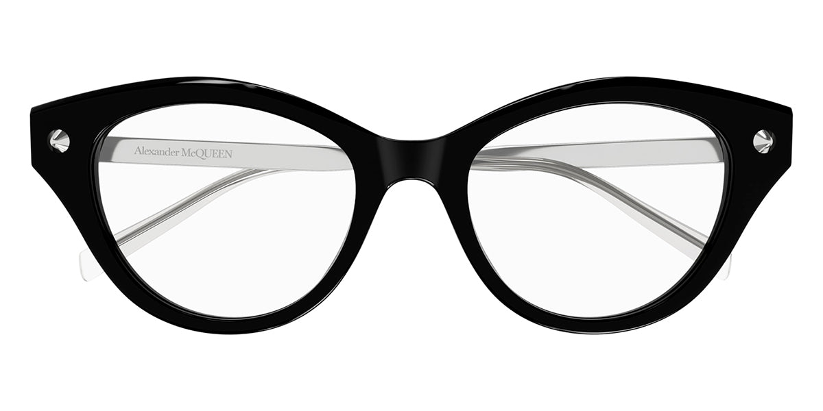 This cat eye Alexander McQueen optical comes in a shiny black and silver frame.