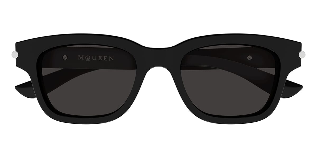 This square Alexander McQueen sunglass comes in a black frame with grey lenses.