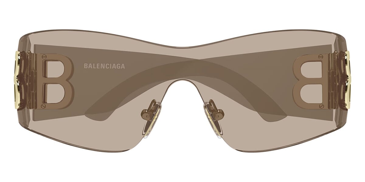 This shield Balenciaga sunglass comes in a brown frame with brown lenses.