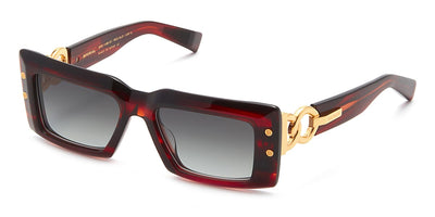 This rectangular Balmain sunglass comes in a black with gold frame with dark grey to light grey gradient lenses.