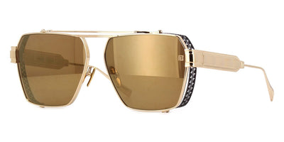 This square Balmain sunglass comes in a shiny gold frame with grey gradient with light mirror lenses.