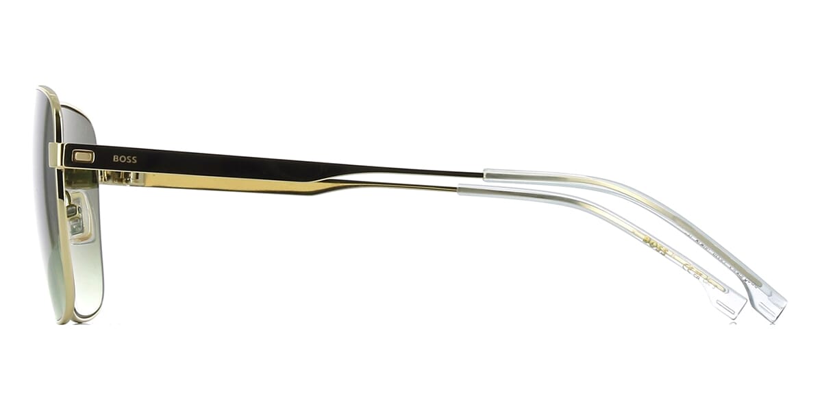 This square Hugo Boss sunglass comes in a shiny gold frame with green gradient lenses.