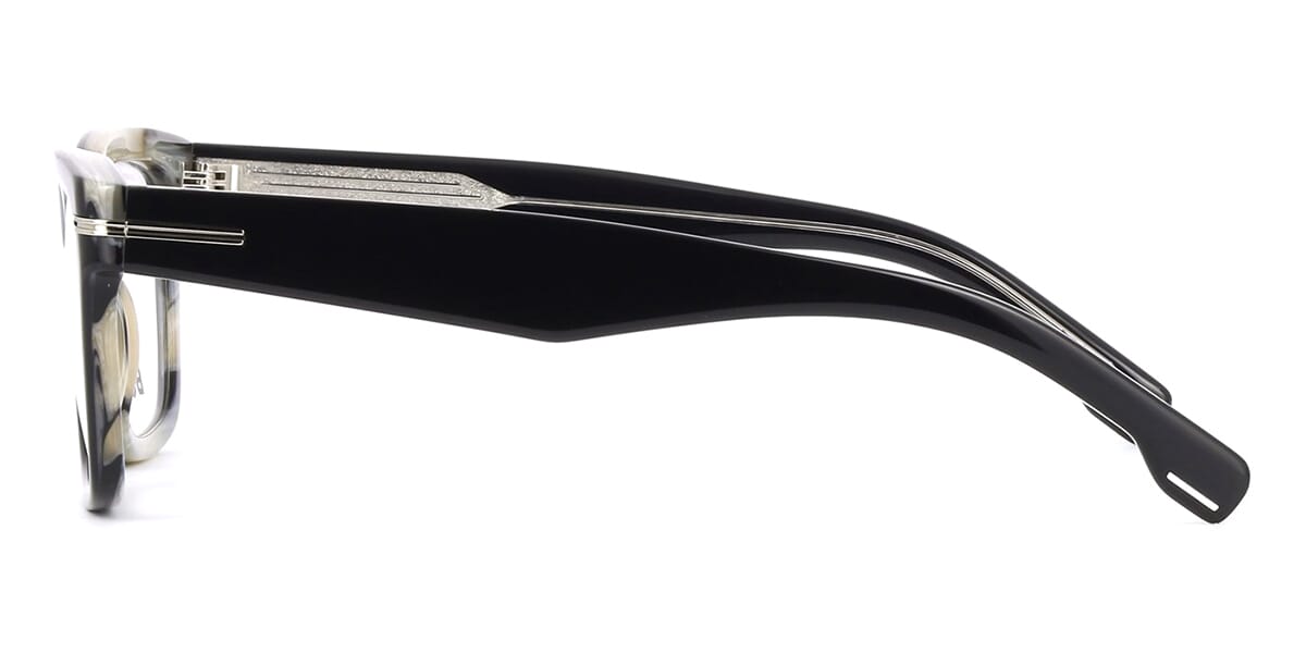 This square Hugo Boss optical comes in a shiny black and stripped white frame.