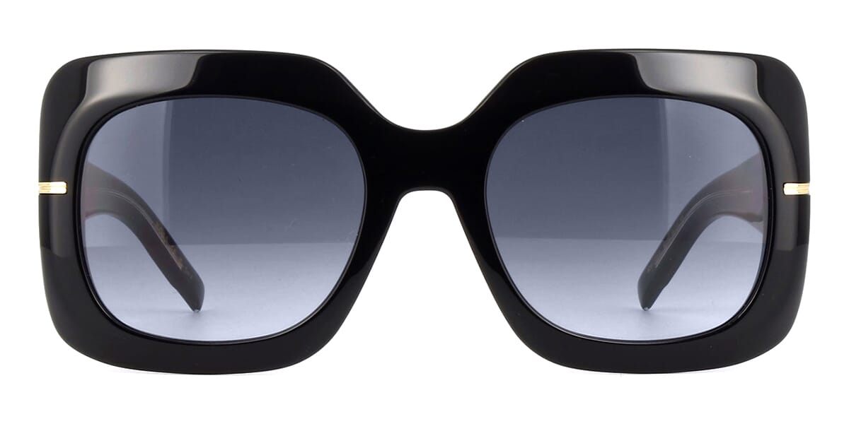 This square Hugo Boss sunglass comes in a shiny black frame with grey with light mirror lenses.