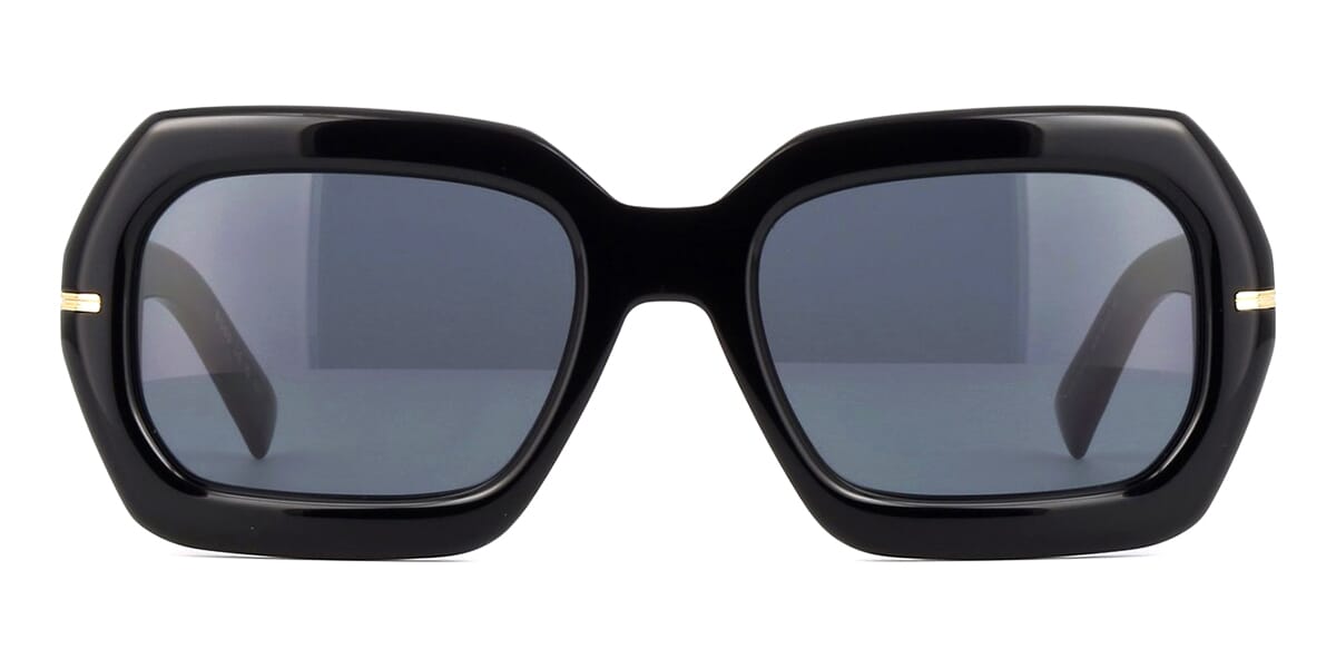 This square Hugo Boss sunglass comes in a shiny black frame with grey lenses.