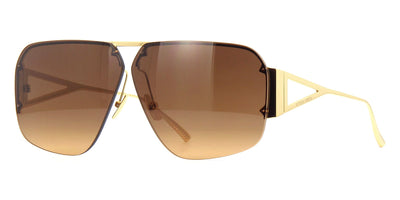 This square Bottega Veneta sunglass comes in a gold frame with rainbow mirror lenses.