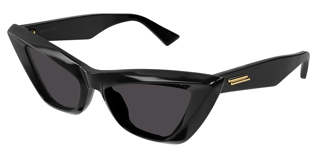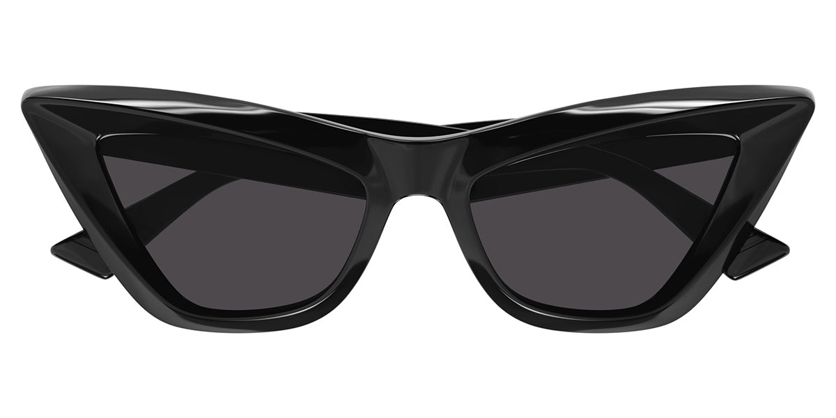 This cat eye Bottega Veneta sunglass comes in a black frame with grey lenses.