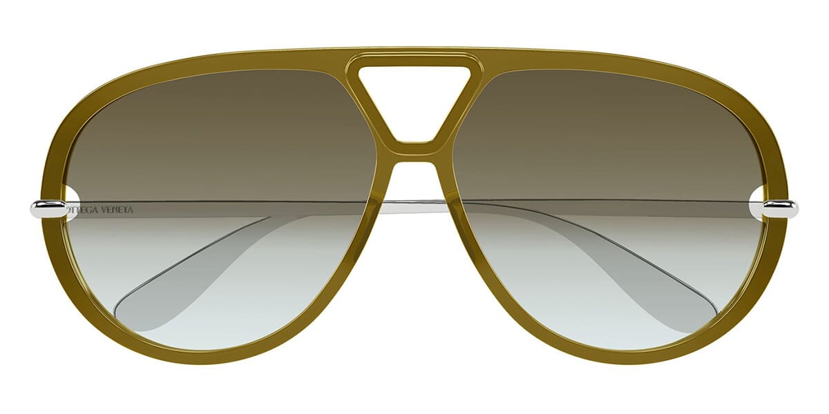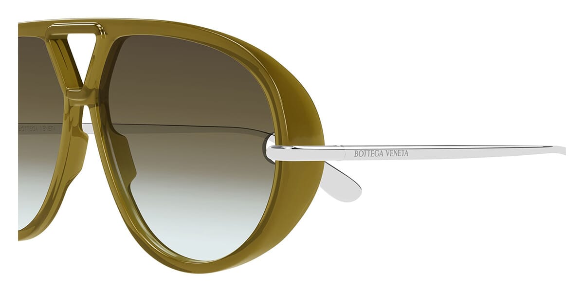 This aviator Bottega Veneta sunglass comes in a brown and silver frame with brown gradient lenses.