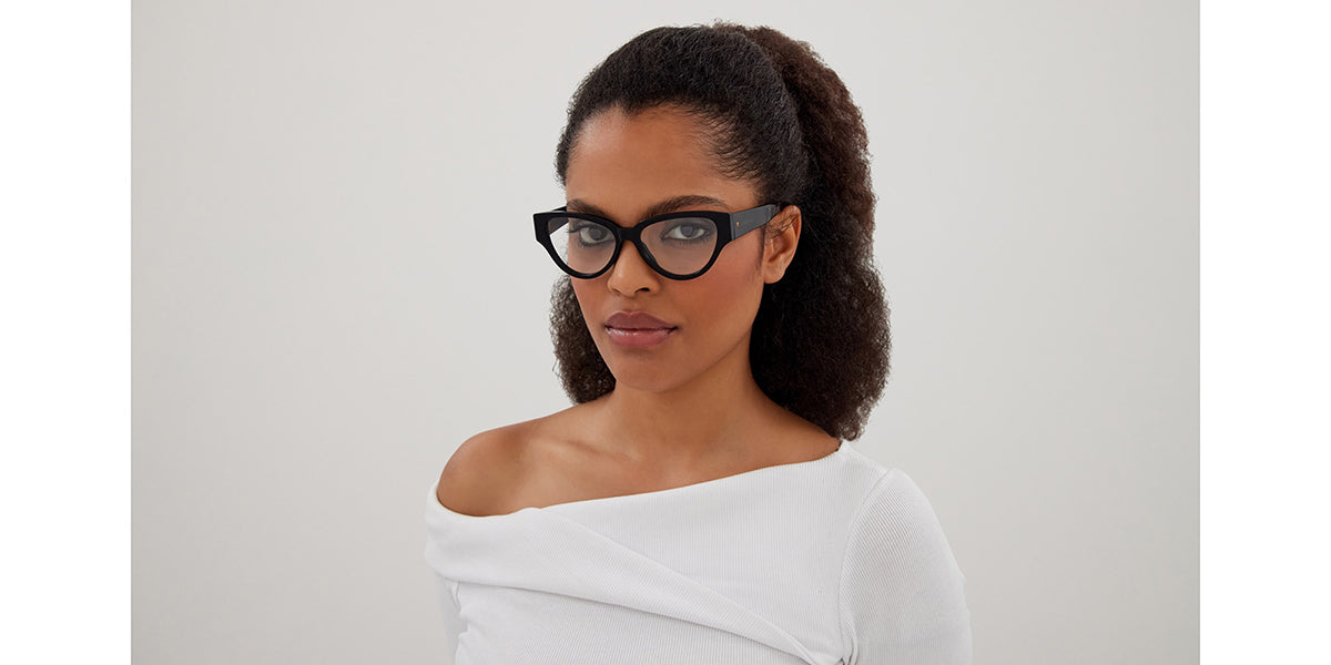 This cat eye Bottega Veneta optical comes in a shiny black frame.