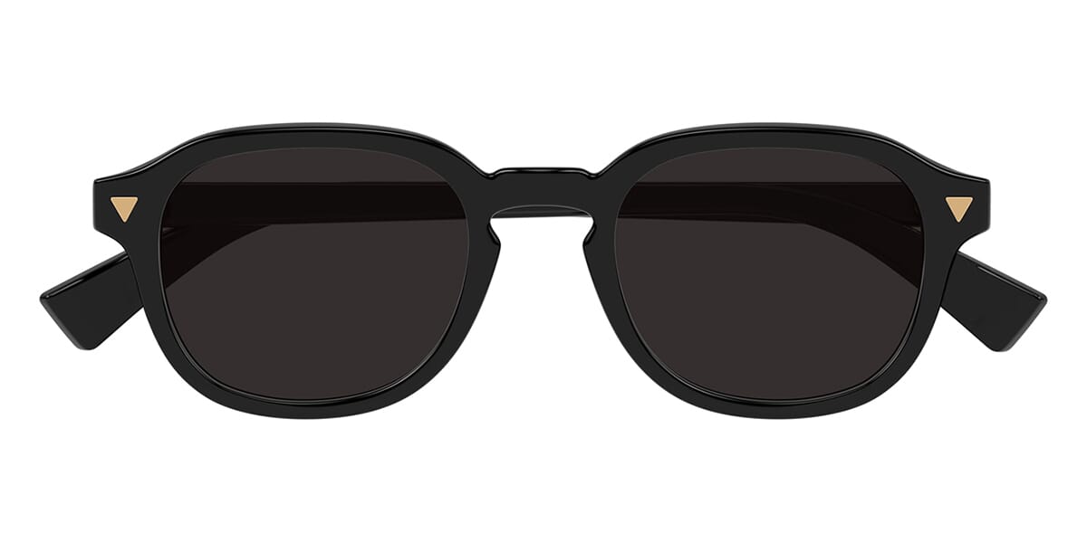 This square Bottega Veneta sunglass comes in a shiny black frame with grey lenses.