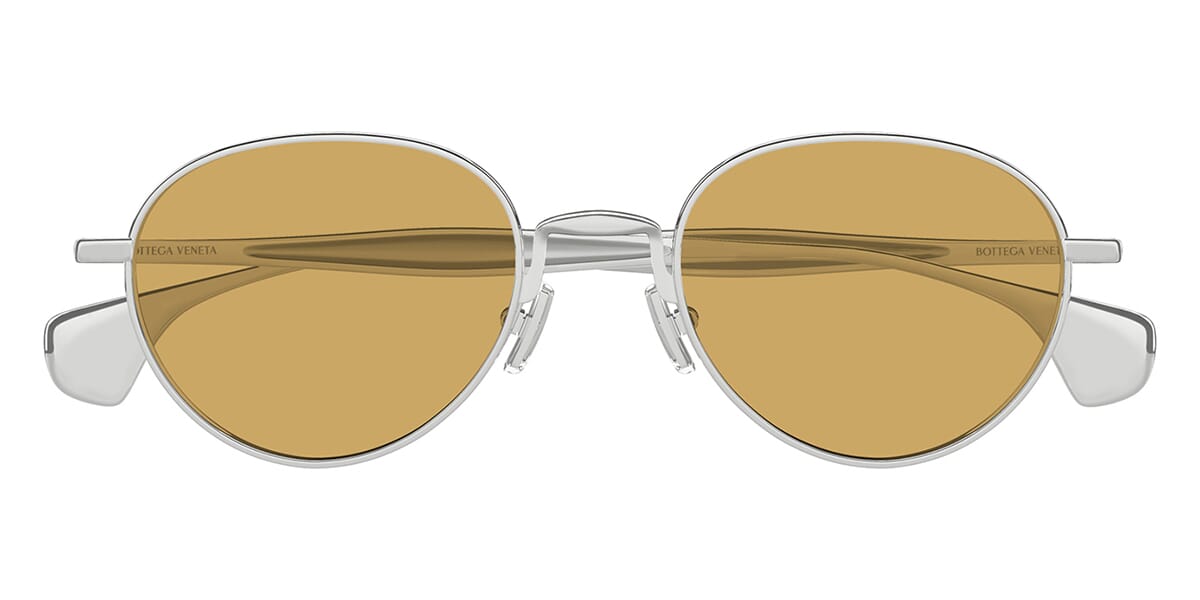 This square Bottega Veneta sunglass comes in a silver frame with brown lenses.