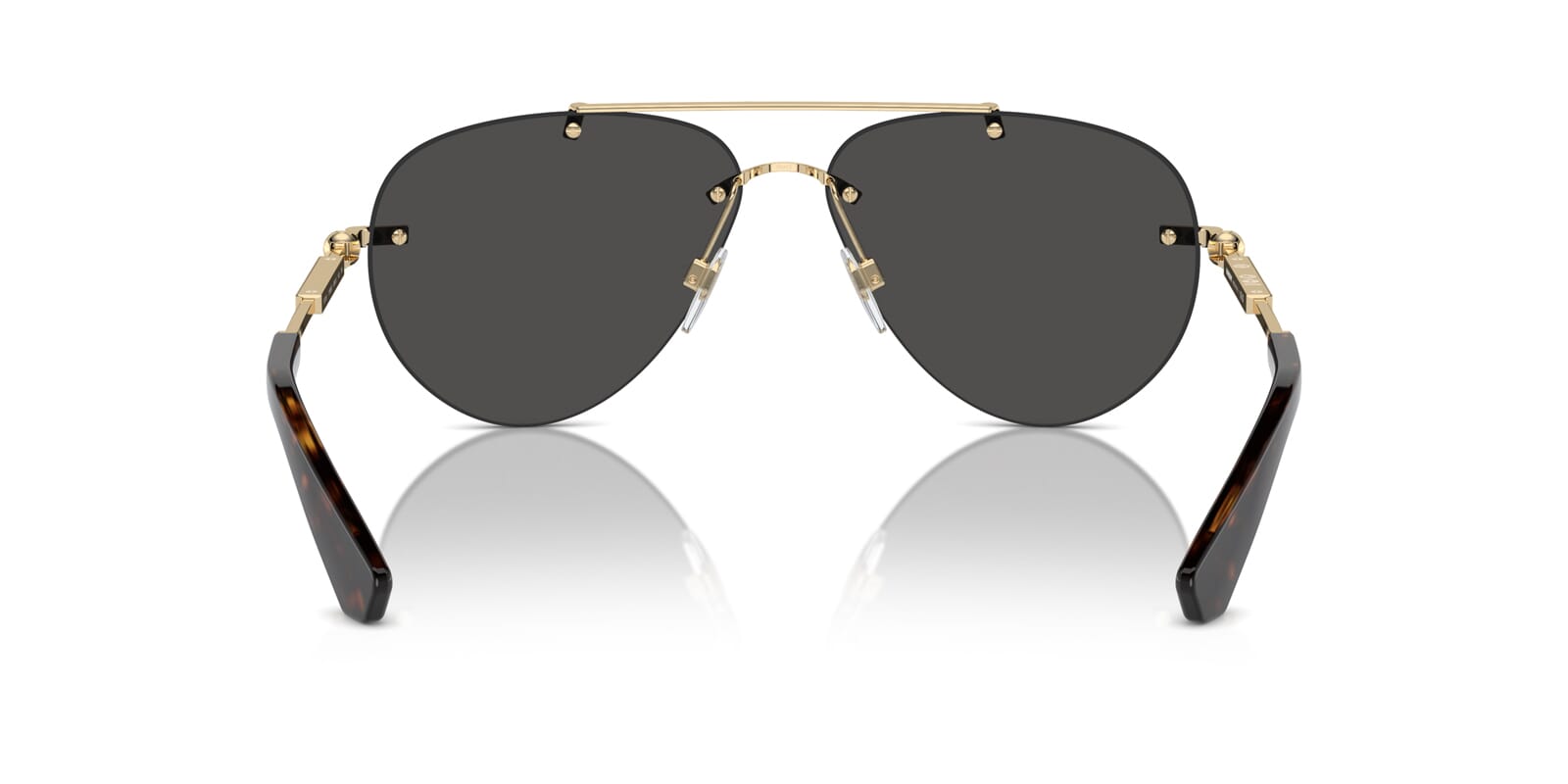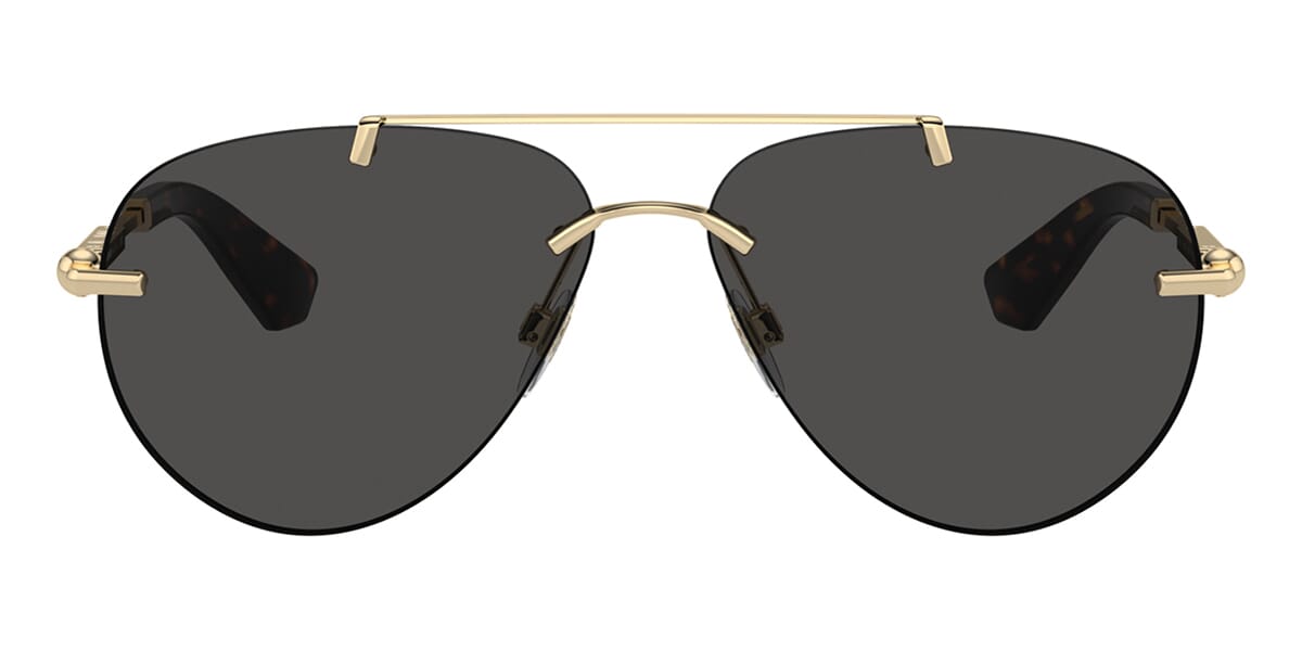 This aviator Burberry sunglass comes in a light gold frame with dark grey lenses.