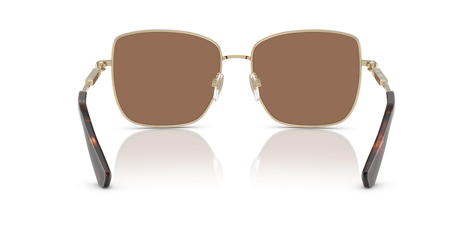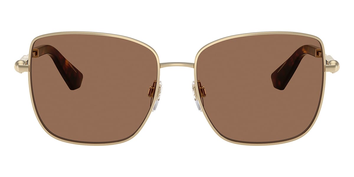 This square Burberry sunglass comes in a light gold frame with dark brown lenses.
