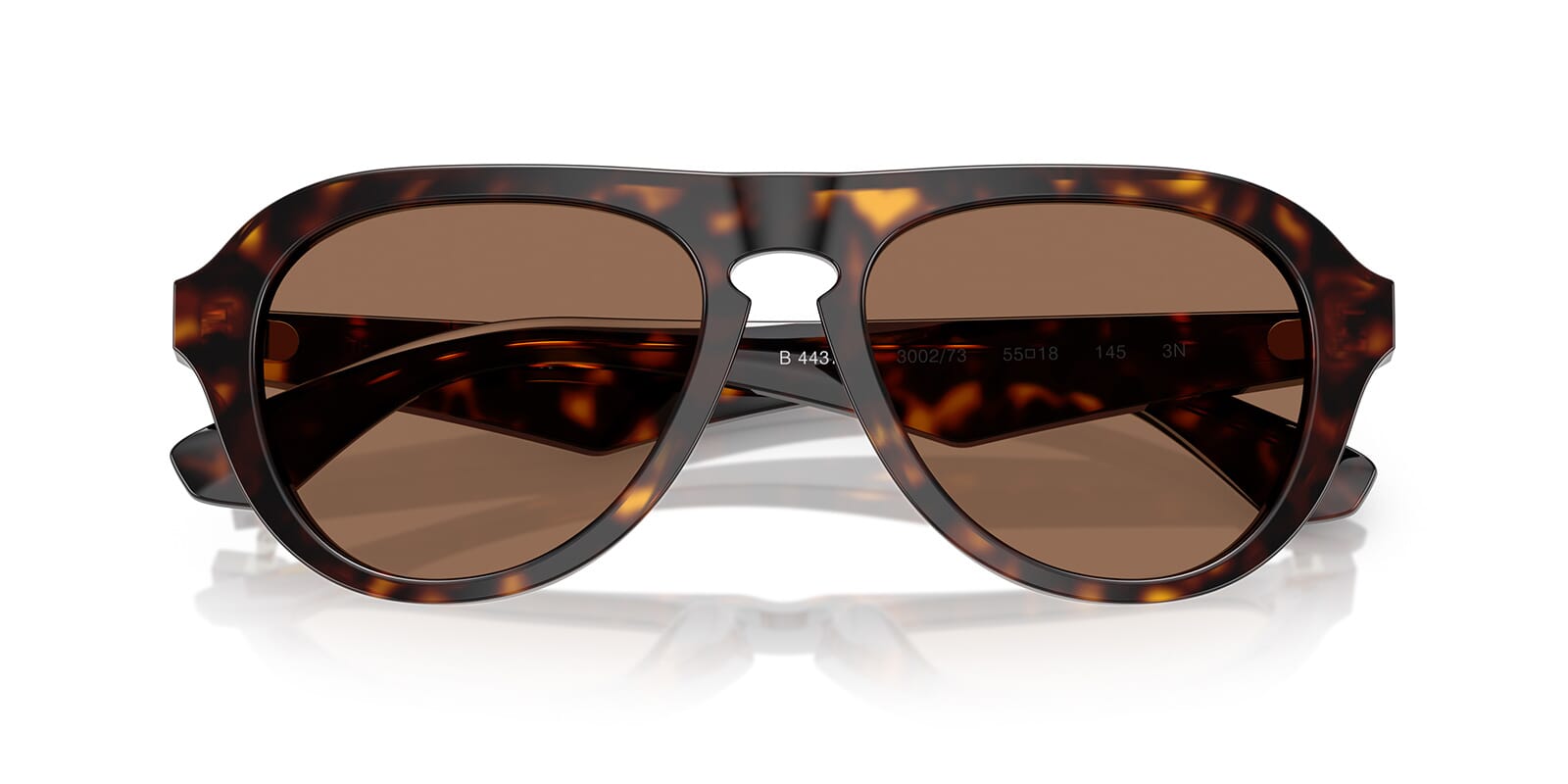 This aviator Burberry sunglass comes in a dark havana frame with dark brown lenses.