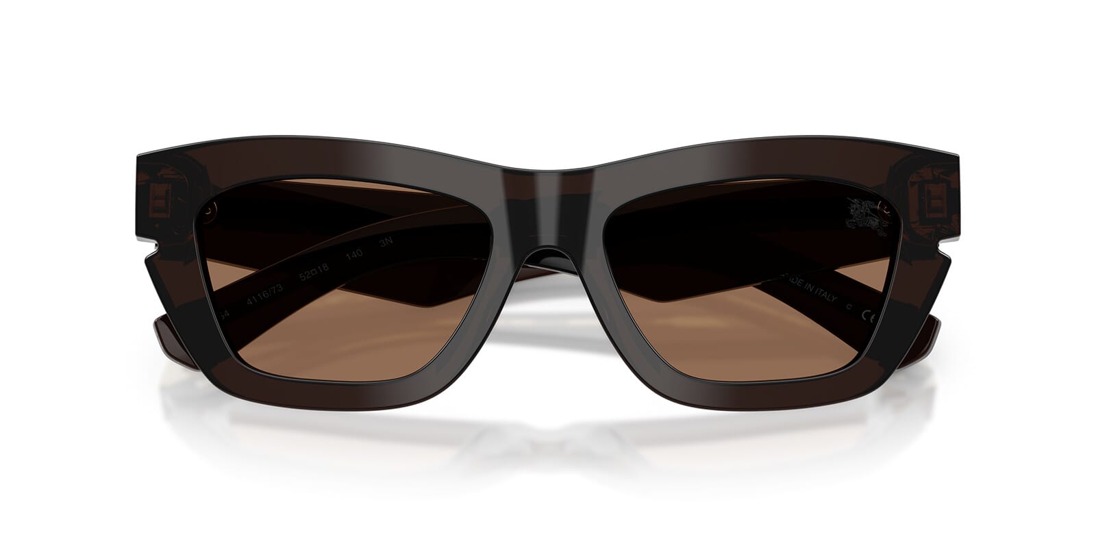 This cat eye Burberry sunglass comes in a brown frame with dark brown lenses.