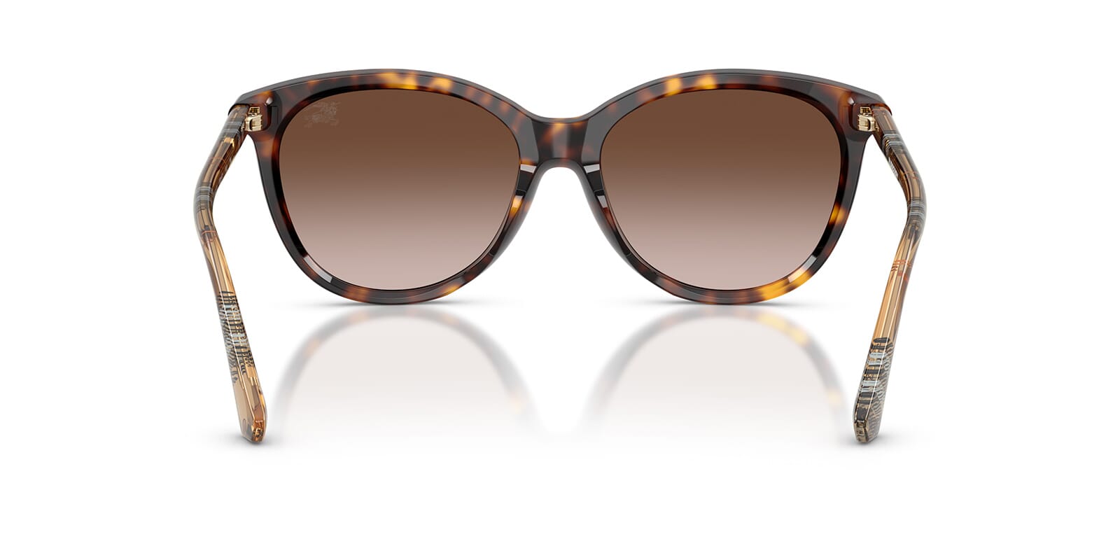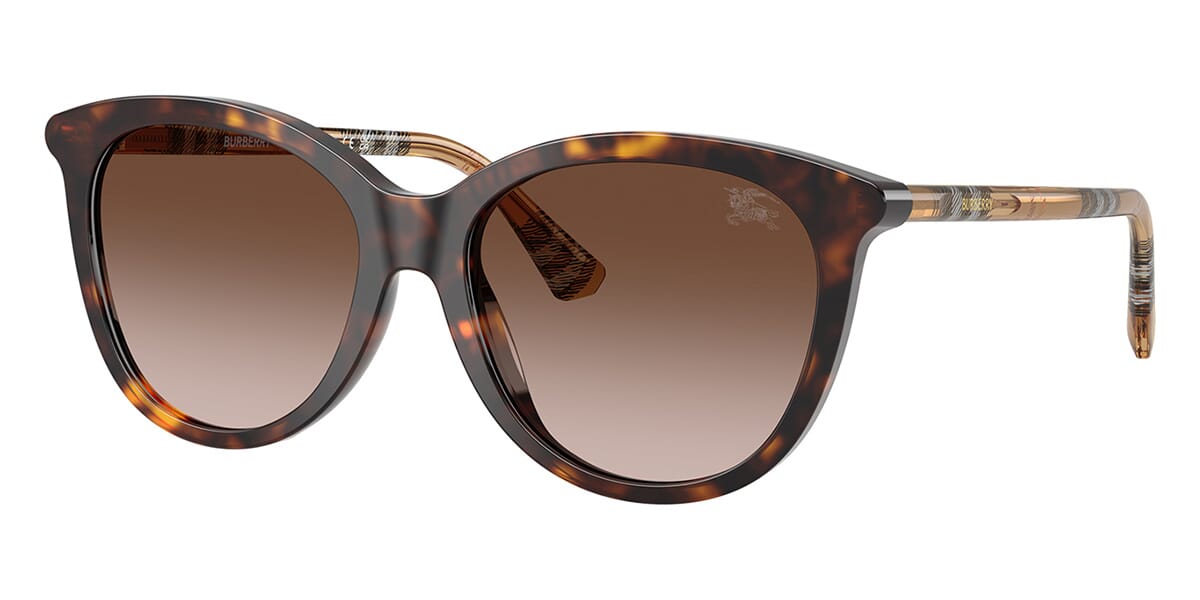 This round Burberry sunglass comes in a dark havana frame with brown gradient lenses.