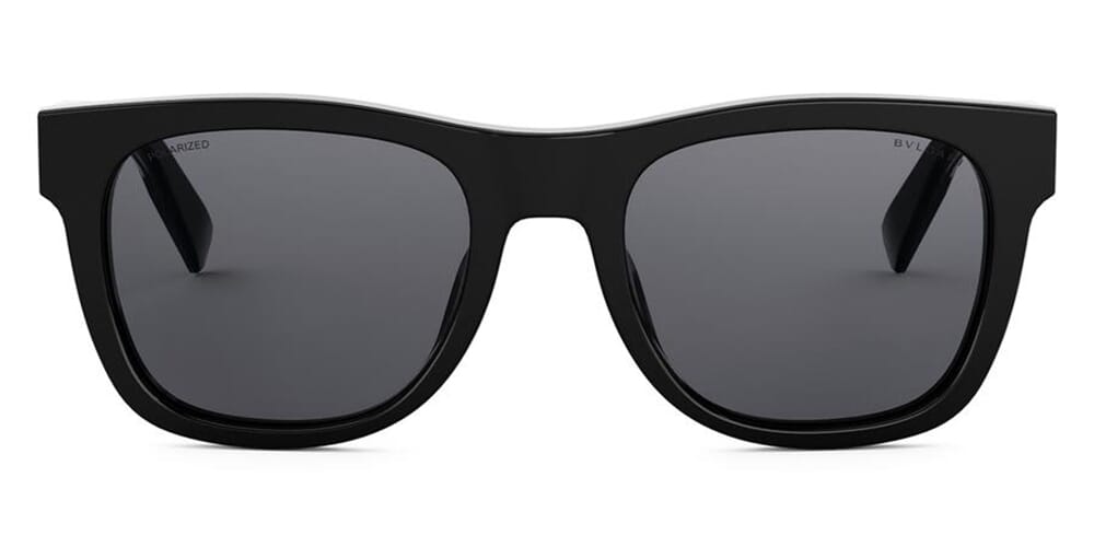 This square BVLGARI sunglass comes in a shiny black frame with grey with light mirror polarised lenses.