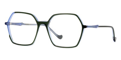 This square Caroline Abram optical comes in a shiny green and pink frame.