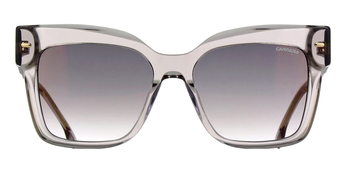 This square Carrera sunglass comes in a grey crystal frame with grey gradient with bronze mirror lenses.