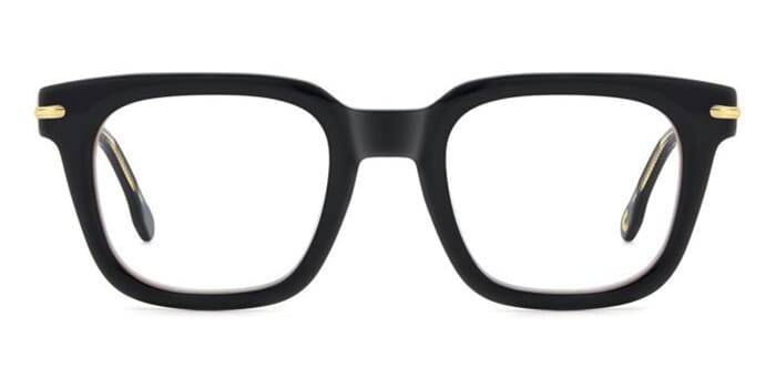 This square Carrera optical comes in a black with red and white stripe detail frame.