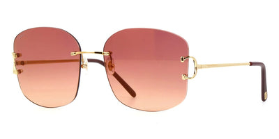This square Cartier sunglass comes in a shiny gold with black frame with grey gradient lenses.