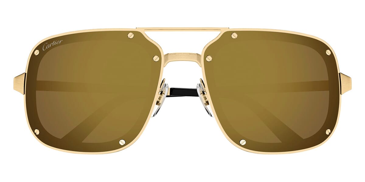 This square Cartier sunglass comes in a gold frame with brown lenses.