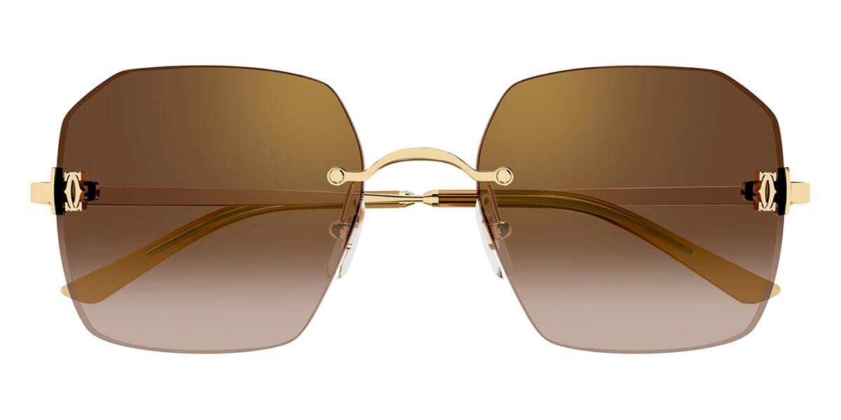This square Cartier sunglass comes in a shiny gold frame with brown gradient with gold mirror lenses.