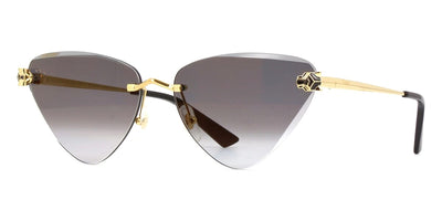 This cat eye Cartier sunglass comes in a shiny gold frame with brown gradient lenses.