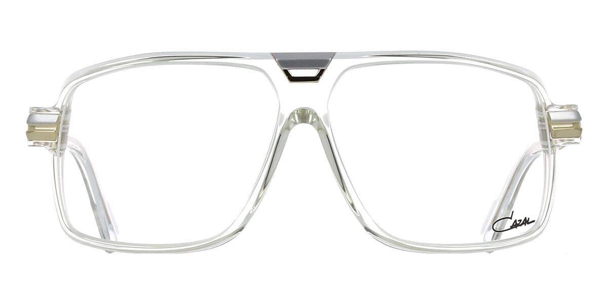 This square Cazal optical comes in a crystal clear and satin grey frame.