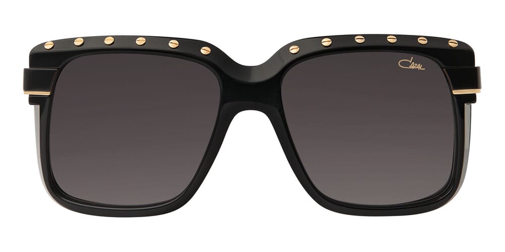 This square Cazal sunglass comes in a black frame with grey lenses.